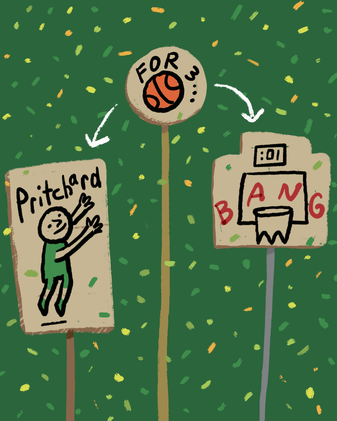 Going to the parade with two friends? Consider this 3-person Payton Pritchard sign system. Stand way far apart from each other, have fun with it!
